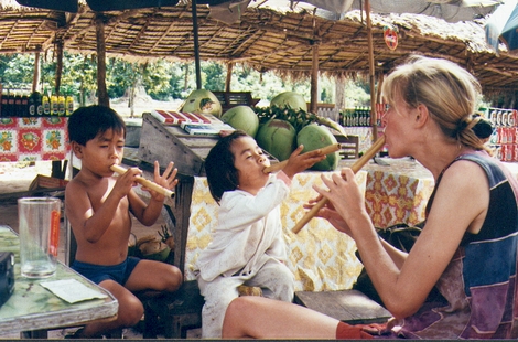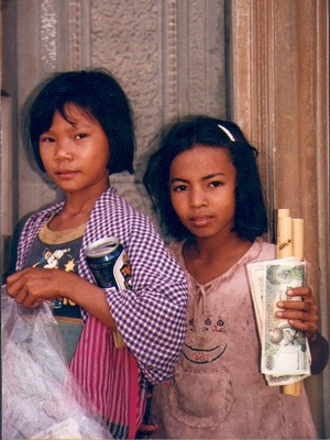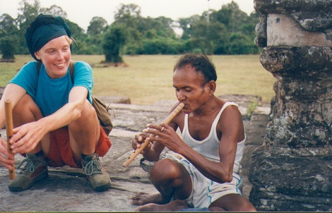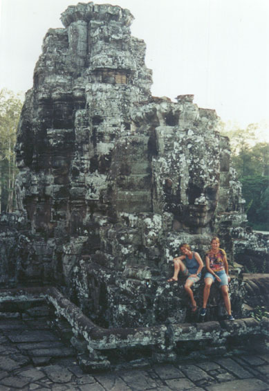 Nov.19 The others went out to see the sunrise - I stayed back in Mahogany - (felt dizzy) - drank a lot of water (bottle water) & is now feeling fit for life! We'd been out to see "Johnny's temple" Prah Khan & yes Johnny it's much more peaceful & mysterious than Ta Prohm - here are no food stalls - just the sounds of the jungle & shadows & trees - VERY INDIANA JONES! We sat down in the roots of a tree - Kate played her bamboo flute & the time stood still. Nov.20 I'd spend most of the day in the guesthouse - after hitting my head into a log at the market in Siem Reap !!! Nov.21 Today we'd been shopping !! (Sometimes it's good to stay away from the temples a day or so to let it all sink in!) Bought some sarongs & some of us swapped clothes - I got Kate's old ragged peace T-shirt ( & KATE I still got it) & BirgitSusanne got another T-shirt from me - Kate got Annemette's leggings. It's a good way to clean your backpack! Nov.22 / 23 Went back out to the temples again! The temple area starts about 7 km north of Siem Reap - There is another area east of town too - but so far I haven't seen that part (another life another time) You buy passes 1 - 2 - 3 days ( about 20 - 40 - 60 $ ) & the drivers of the mopeds will cost x-tra - but it's worth it - I so far haven't met any who said ugly thing about the temples of Cambodia's jungle - some world travelers even said it was more fantastic than the Taj Mahal in India. David had a small accident - while climbing up on the moped - he hit the toe on a metal-thing on the moped & scooped the nail off. We met a lot of children at one temple - they tried to sell us old paper money & bamboo flutes - we took SO many photos of them. I climbed up on a huge stone elephant & couldn't climb down again - Did after some thoughts about staying there the rest of my life! Said goodbye to the temples sitting in a twilight filled Bayon with David & watched the faces change colors & appearance!! Nov.24 Left Siem Reap this early morning - by fast boat again - It was a cool day - Annemette fell asleep inside the boat - the rest of us sat on the top again. I had to go to the restroom & coming up again Kim yelled "Get down Hanna! - get down!" & I crawled more or less like an eel over the boat to the others - somebody from the shore was shooting at the Boat! Back in Phnom Penh we realized that a policeman in the boat SallyAnn & Jim were in was shot in the upper arm. (They were NOT kidding telling us to sit downstairs). Back in P.P. we went to Bert's Bookshop (An American guy married to a Khmer girl) & guesthouse & we had a wonderful dinner on the balcony of the guesthouse with Bert & his family. |