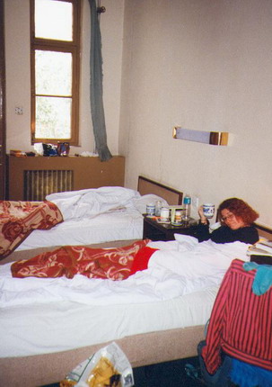 in 2 rooms – Annemette & I share ours with Bettina (from We went down to a telephone center & called collect – none of my family was home. |