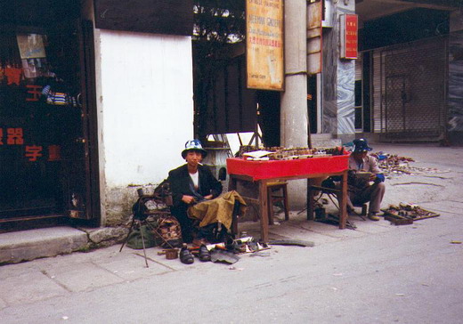 out into the real We just left Shijiazhuang – we slept for a while – we got a very active 5 year old here in our compartment – he’s everywhere. I gave him some cool Go Cards - & he loves them. Everybody is looking at us & our writing & how we eat (& do we eat with chopsticks – yes we do) The nature out side is changing – trees & green paddy fields – the train got a loudspeaker with western music turned into Chinese songs – Viva España in Chinese is very special I’ll tell you! Slept for about 10 hours – it’s cold here – Annemette is coughing & so is the action kid. Though his parents feed him 1 bottle Chinese beer before he goes to sleep – a little old lady came down & gave Annemette some blue pills to take for the coughing. (I think they like us.) Outside the windows the nature changes again. Mountains & little villages – I think we must have crossed the Yangtze River while we slept. We have crossed so many rivers – I can’t tell them apart. We need more food than we brought along. We’d been given sweet potatoes & we bought some rice & veggies from the conductor. The train is a bit odd – the wagons are more or less open – with an isle in the right side & partitions to the left – each got 6 bunks – I’m in the lowest & Annemette in the top – mine supposed to be used for everybody to sit on during day time – but I’m too “stupid” to know that – so they use the other side. We are going through tunnels & over bridges – passing paddy fields & here’s another strange thing about Chinese people – somehow they love everything packed in Styrofoam – that’s not a bad thing – the terrible thing is that they throw it everywhere – here they throw it out of the windows – so the paddy fields are rimmed with it. (After China I call small Styrofoam pieces – one use for packing = Chinese marshmallow) October 31st 1993 It’s Halloween today & the landscape we pass suits it very well. The view shows us rocky mountains – coal mining towns – fog & loneliness. The green paddy fields are gone – life up here – is tougher than tough. We’re drinking green tea & I hate it – but it must be good for something – colds maybe??!!! Then we passed through 5 tunnels in a row. Got out of the last on 500 meters up over a pretty valley – then there were paddy fields again. The train got a very strange way of slowing down. It blocks some of its wheels – result - the green tea leaves its cubs all by itself. The villages cling to the mountain sides – the world is so pretty – with all its differences. Finally we arrived in Kunming – elevation 5000 meters above sea level. It looks modern – we walked up Beijing Lu Street – to hotel Kunhu where we got a shared room with 2 guys. One Austrian & one French. I had a shower - & then we got hungry & walked down the street to a café & met Lisbeth & Jacob ( they came from Gørlev in Denmark – Lisbeth knew Dan & Morten ) A bit later 2 other Danes came along (Jacob & Jeppe) they told us that hotel Camellia was a much better hotel & they had dormitories. We move tomorrow. November 1st 1993 Woke up with stomach ache. Not funny - the toilets or whatever you’ll call
