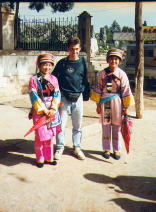 lights – it looked like a cheap discotheque in Then the others came out & we headed towards the Stone Forest. It’s not a forest at all – but the area is full of strange rocks looking somehow a bit like trees – at least some of them do – the rest is full of caves & temples. The formations got funny names – like: Elephant on a platform – Two birds feeding each other & Woman waiting for her husband. We tried to get lost – (Erik – Annemette – Sue – Orit & me) but the local guides – guiding local tourists around were everywhere. But we had fun – talking – climbing – laughing & taking photos. Finally we walked back to the bus – but it wasn’t there – it was broke somewhere else. Erik was in panic – he was going up to Dali later in the evening. After 2 hours – the bus driver & the bus arrived & we could “fly” home & wave Erik goodbye. Sad down in Sue’s dorm &am! p; talked to some other travelers – had fun with an “Aussie” named Mark – he’d been going to the bank at least 3 times to cash checks but kept finding “dried plants” one could smoke & completely forgot about the bank & getting some money. Sue – Annemette & I plus 5 Japanese guys from the dorm went out to dinner. It was a funny evening. Haven’t heard from the Camellia tourist guy. November 3rd 1993 Went down to the travel man at 8am – he wasn’t there – another jerk told us what they couldn’t help us. At 9 o’clock our man came & told us that there was no train all the way to Hanoi – but he would take us up to the North Station & fix us a train ticket to the border. But not until the day before - we wanted to leave. Okay! Then we walked down to meet Sue & sat in the dorm. & talk with 2 guys – one of them had been down to the border & been refused to cross over – cause he had a “flight in visa “ to Hanoi International Airport – so had we !!! What now – maybe we could buy a ticket from Nanning to Hanoi. In the meantime Annemette’s giardia had started to regain itself. (& smart as she is not – she forgot her medicine back home) we needed some pills for it – took a walk around town – but nobody understood what we needed. We also tried to ask CITIS (another travel agency) if we could buy a ticket from Nanning to Hanoi – but we came into their office 5 min. before their lunch break was over – so they refused to help us – that route didn’t exist at all – though we could see it on a map behind them. F… Chinese officials. Back at Camellia hotel we met an American guy who had a medical pocket book & we found a name to a cure – that brand we had seen in one of the pharmacies we had been in. We ran downtown again & bought the pills & Annemette swallowed some – she was burping rotten eggs now. Said goodbye to Sue & got our packs & went down to the bus terminal to wait for the bus to Dali. November 4th 1993 Didn’t sleep an awful lot – they got horrible streets here in Checked in at hotel no.2 – we got a nice big room with 3 beds – had a quick wash – couldn’t sleep – so we took a walk around town – here are 1000s of things to look at & buy. The hill tribe people are wearing beautiful headdresses & are laughing & full of smiles & wants to change money – we got a Tibetan café right across the street where they serve wonderful food. Here we sit right now together with a bunch of Danes – Brits & French people. Later I went shopping – it’s so dead cheap – a pair of pants 18yuan – a