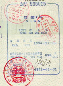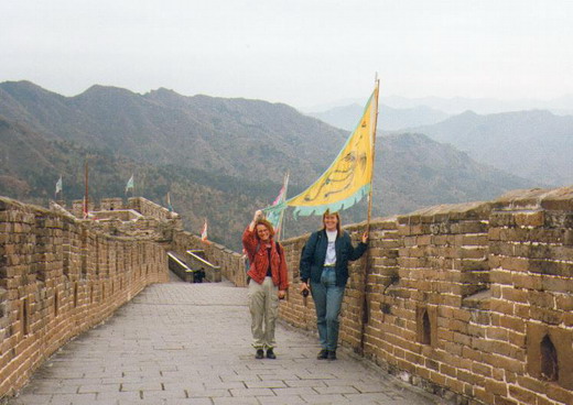 October 23rd 1993 Slept wonderful – got up - & found a clean new t-shirt & threw the other out. (We got a deal – if we buy something – something else has to be dumped – that’s why we hardly travel with anything of our own favorite clothes – only something strange we buy cheap in a 2nd hand shop) Today was the day we were going to meet the rest of the group on Tiananmen Square & see if they still remembered us. First I wanted to brush my teeth – opened the door to the bathroom & found Mette. (A big hello & hugs.) Ate breakfast with her & Frederik - & used them as our guides – cause they knew anything about Beijing now – all these things we were about to learn. Like riding the busses – a special thing - & where to cash traveler checks & were to get good cheap street kitchen food. Up at the square we waited for the rest to show up – while Chinese couple placed their little one (child) in front of us & took photos (does it bring any good luck to have a “ferlang” in the photo???) Finally the others arrived – Tina – Anette – Hasse – Rune – Sussi & the entire Høng gang. It was cool to see them again. We decided to meet them back at the same spot at 5pm & to dinner with them all (except for the Høng gang they had other plans). Tina – Sussi & the Swedes took us down to their hotel where we could change “tourist money” to “people’s money” for a good rate. (At those days there were 2 kind of money in China – the tourist money looked like something from a monopoly game – when we cashed travelers checks we always got tourist money & had to change them to “peoples money” - I think the peoples money were called FEC’s & the tourist money RMB’s ) I liked their area – it was messy & there were good restaurants – like the Pink House - & loads of money changers. Took a mini van up to Tiananmen square & met Mette & Frederik – they all wanted to eat Peking Duck but it took a while before we found a restaurant which served it. Annemette & I ate veggie – it was good. Now we are back in our room & are planning our stay here in October 24th 1993 We had planned to se the summer palace today – but I had stomach ache. So we ended up exploring Beijing instead. It’s huge & very confusing. It’s so full of people .On bikes – pressing themselves into busses or out of busses. So many taxi’s & no traffic rules as far as we can see. Dust & rubbish everywhere. We took the bus up to hotel Beijing & walked down to the International General Post Office. Where we picked up Poste Restante letters – it was so good to here news from home. I got 3 from “P’nølle” & 1 from Tins – they seems to be so far away (& they are I know) – we sad out in the sunshine & read the letters loud for each other. Then we took bus 20 down to Pink House & sad there & wrote letters until the others came back from the Palace. Tina & Sussi told us we could order tickets through the “change money man” & we did that. (He’ll pay somebody to go to the train station & buy tickets for us – so we don’t had to spend a whole day up there not understanding what they say – that’s cool & easy) Home in our hotel we met Frederik - & we invited him & Mette in for a cup of tea & some liquorice – we decided to take a trip out to the Great Wall tomorrow. October 25th 1993 Woke up & got dressed & met Frederik & Mette – had some street kitchen food (a huge pancake with chili & spring onion & herbs) – found the bus & drove up to Tiananmen Square – thought it would be funny to see the wall with a bunch of local tourists & lined up for a tour. They thought it was odd to see us there & said we could go on a Ferlang trip instead – but we insisted on staying where we were. So now we’re here in a mini bus with 17 Chinese tourists – they’re from all over the country & we’re having fun. 3 of them speak English & translate & explain to the others & we’re laughing & chatting in Danish – English & Chinese. We are their private Ferlangs (ferlang means long noses – that’s what we are) I deserve my “I climbed the great Wall” t-shirt – there are 1700 steps from the parking area up to the wall – my condition is lower than low - & I almost needed oxygen when I finally made it to the top. WOW!!! What a view – the distance blue mountains – the soft hills dressed in autumn colors & the wall endlessly clinging to the hilltop. Our private general & his 2 wives took photos of us & we took photos of him & each other & the view – it was something else. Down again we were told that we would be taken to the future Olympic city – bought some postcards & headed back to Beijing. The O.L. city looked ragged – but they were all very proud of it - so we only said what we thought about it in Danish to each other. Then we all got dropped of by a metro station out in the middle of no where & Verse & Jennifer guided us back to civilization. October 26th 1993 Met up with Verse on Tiananmen Square. First we needed some real western food & took Verse to the McDonald – on the way we met Jennifer & her family (out of 12 million people) we gave her a hair clips (she had long hair) as a memory of us. Then we ate some burgers & used their “eastern styled” toilet – a hole in the floor & 2 raised platforms to stand on. Then we walked over to “McDonald Street” (we call it that – cause McDonalds is on the corner of it & another street). I bought a maroon colored silk shirt for 98yuan (that’s 9$) & a green one for my mum for 48 Yuan – Annemette bought 2 jackets – we spend a lot of time looking – but ended up meeting with the other Danes & had a goodbye coke – for Tina & Sussi were leaving. (Sussi & I tried a public toilet – but hurried out when we saw 2 rats as big as cats!) Verse – Annemette & I decided to meet up tomorrow & see the Forbidden City together. Then we took a taxi with the Swedes back to backpack area - Rune & the taxi driver had a discu
