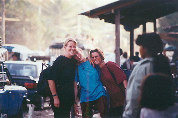 Dec.1 Luang Prabang! This place is beautiful. Mountains - Temples & rivers: Nam Mekong & Nam Khan (nam = river). The town is medium sized & full of lovely wooden houses. We landed in the sunlight & watched it sparkle in the small temples full of golden ornaments on the hilltops. The airport was small only one concrete building - where they unloaded our luggage in one pile so we had to find the backpacks ourselves - showed a man the matching tag so they could see we found the correct bag. We had a lot of fun 'cause the tags said Ho Chi Minh City - I guess they had run out of Luang Prabang ones. We found a motorcycle taxi & he guided us to a lovely guesthouse named Vannida. We got some super rooms - huge & full of bamboo furniture. The guesthouse looks like an Asian version of Pippi Longstockings house. It's full of balconies - stairways & a garden full of roses. We took a walk along the Mekong river - found a restaurant & ate green papaya salad & fish & shared a bottle of Thai whisky with Ingrid (Belgium) - Tim (USA) & Ivar (Sweden) - enjoyed life & watched the sun go down over the Mekong river. Dec.2 We hired bikes today & drove around to look at the whole town. Ate Laotian ice cream ("frozen" powder milk with chocolate taste) REALLY strange. We'd seen temples & kids & took SO many photos of all of it. We been on a marked - & seen 100's of Buddha figures looking at us with this mysterious smile - they all got. We went out to the football stadium to Revolution National Day (20 years).It was fantastic - 1000's of Laotians & 4 Ferlangs. We'd seen agriculture exhibitions (aŽlaŽ1950) TOP Modern. - school material - Dental - Hospital equipment - they were so proud & we smiled & smiled. It was so great to see it all - we'd learned too - to appreciate what we got back home! We found a dancing area where we were invited (well actually we were ordered ) to dance with some locals - thy matched us up with some with the right size - & we danced the night away & had a LOT of fun. |