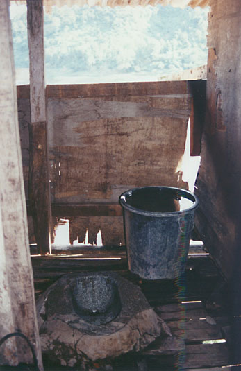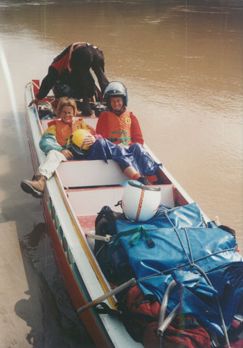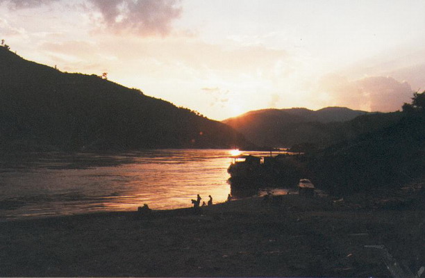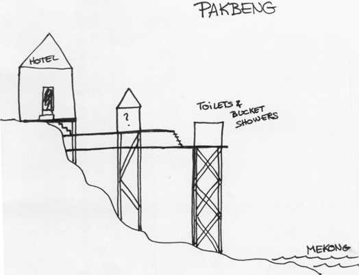 Dec.3 We went down to the fast boats at 08:00 am - after the officials had checked & listed our passports & more travelers had arrived - we all walked down to the speed boat - our backpacks were placed in one end & we sat down in the other end. They gave us a life jacket& a helmet each - & we were ready to go! 80 km an hour - up the Nam Mekong - for 3 hours. It was a tough ride & funny because we were extremely wet from the waves. We arrived in Pakbeng - a strange little town - clinging to the hillside. We more or less had to climb up to the road from the river. There are 2 hotels in the town - a primitive wooden one where we live & another primitive dirty one up the road. Our hotel is hanging or balance ½ way on the hillside & 1/2 way on poles. The toilets (eastern style) & bathrooms are further out on a strange arrangement of poles & boards - but the view is stunning. Took a walk to see what this little town had to offer - met a weird Aussie & a German girl. Dec.4 We went on a picnic today - up a small stream. Bought some veggie. Food on the local market & some cans of tuna fish - found a small track down to the stream. David - Annemette & Kate took a swim - I collected funny stones. (I still got the 2 - Kate & David gave me. We ate our lunch - read & Kate took a nap & David & I updated his diary. On the way back to town we met Tim (the American from Luang Prabang) we all walked through the market & saw roasted guinea pigs. We ate dinner in the restaurant across the street were a lot of single girls were working ( I later realized it was a brothel - but I learned to cook basmati rice there - so at least I learned something useful) - it okay to be stupid once in a while. We danced & had fun & tried to teach a poor French guy belly dancing - I don't think he understood what was going on. |