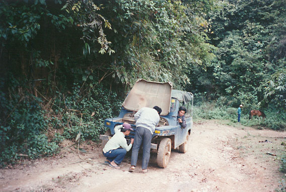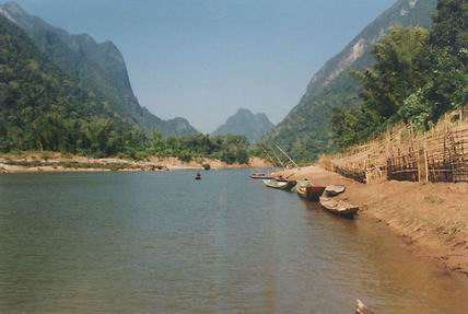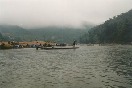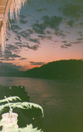 Dec.9 We got up this morning & it was a cold morning - we slept with all our clothes on - minus the boots. Took the same rusty old jeep down to Hat Sa - only this time the driver let it roll in neutral gear most of the way - & the passengers rolled & tumbled around in the back - great fun! We entered a boat & started the trip down the river again. Shared the sunflower seeds & mandarins we brought along with the locals & they shared their sticky rice with us! When the sun came up life became a bit easy & we took off some of our layers of clothes. The Laotians spoke to us in Lao & we answered back in English - nobody understood a word - but we had a super good time! David tried some Laolao (homemade booze) it smelled terribly & made him sleepy right away. I gave the only other girl in the boat an arm ring from Egypt - (less to carry) She looked happy. Arrived in Muang Khua harbor at 02:15 & the boat to Luang Prabang had just left so we checked in at our little hotel again (went in the back way so we didn't have to register) I washed my "dread lock looking" hair in cold water & Chinese shampoo - at least it looked cleaner & we sad in the sun on the balcony & enjoyed life. I saw a prisoner with a big iron ball in a chain attached to his leg coming up the road next to the hotel. Ate noodle soup in a small restaurant - went home to sleep! Dec.10 At 08:00 we left Muang Khua again - it was a misty morning - we brought sticky rice - noodles with chili in banana leaves & bananas with us. There were other passengers in the boat too. A granddad or dad with his little girl - she'd fallen into a bamboo stick & hurt her eye terribly - they needed to see the hospital in Luang Prabang. The sun came up & the land around us was beautiful. We gave the little girl the bananas & shared the rest of the food with the rest of the boat - the granddad gave me some dried smoked meat & I ate it & survived (I so far had been a vegetarian for almost 2 month). The nature was fantastic & changed all the time - soft hills & tall steep mountains. At a point the river police stopped us & the boat owner had to pay a fee. Where Nam Ou & Nam Mekong ran into one another & the sun began to go down - the world stood still - it was a perfect moment (& I keep the image in my eye 'till the day I die) We arrived in Luang Prabang when the darkness came & all the lights were on this beautiful town. I left the cap in the boat for the guys there - we paid & ran up the stairway & took a tuktuk back to Vannida guesthouse - they had a huge room ready for us. Left the backpacks & ran back to town & found a good restaurant & ordered every veggie meal they had on the menu - the plates almost stood on to of one another. NEVER will I eat noodle soup again. |