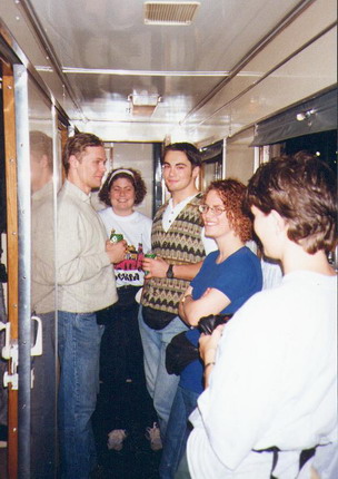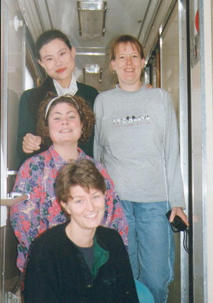 with. Why do you want to get of in The Siberian cold is crawling in – the ground is full if snow outside. What will life be out there?? Tomorrow we’ll be in Irkutsk & Sunday Annemette & I will jump of the train & be on our own for a couple of days. Told the rest to meet us on Tianamen Square next Saturday. If we were not there something awful had happened to us – if we are there - we have had fun. Annemette & Sussi went to a vodka party in Runes compartment – Tina & I stayed back & talked. October 16th 1993 I slept through Irkutsk & didn’t wake up until we drove up & around the Bajkal lake – It’s the greatest fresh water lake in the world – it was breath taking – turquoise blue – small fishing villages along the shores – the birch trees & the mountains behind. What a memory. We found our warm winter clothes – ate rye bread & kefir & a Russian cola . A Russian man makes about 22000 – 37000 rubbles pr. Month (1000 rubbles = 1$) 1 kilo sausages cost 8000 – 10000 rubbles – but 1 liter vodka cost 2000 rubbles – no wonder why they drink so much. We had a stop in Ulan Ude & while we went down on the platform – a thief sneaked in & stole Sussis daypack – Dan saw him & ran after him – wearing no shoes - & got the daypack back – we saluted him & named him “the hero with the dirty socks”. The nature changed again – the trees are gone – it’s brown grassland out here – hills & small villages are hiding in the frost. The rivers are full of ice – the winter is on its way. It’s a pretty – but in a lone suffering way. The night between Saturday & Sunday. Goodbye CCCP – hope you’ll make it in the new times you’re heading into. In Naushki the boarder town – we had a stop from 9:15 pm – until midnight. – first the passport police came & went through our passports (they were very young guys) then the custom police came & they took Dan & Mortens Chinese with them. Our Chinese friends are smugglers – Annemette & I had some of the tall girls goods stuck up behind my backpack – it’s so big they guys could drag it out of the hole it was stuck in – Morten had 6500$ in his boots for one of his Chinese – Our tall girl didn’t get to explain herself – but Dan & Mortens Chinese had to pay a fee & finally our train could move back into the cold starry night. In Suhr Bator – it’s 01! :25am and the border police woman had just been here – got our forms & stamped our passports & we’re all so sleepy & wants to move on. |