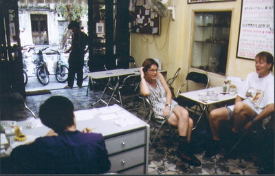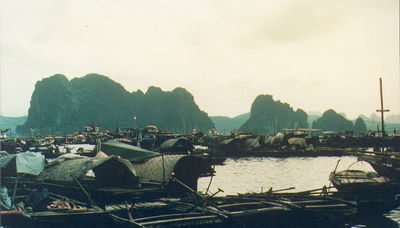 Oct.15 Didn't sleep much - I'd been struggling with the humidity - took a cold shower & went down to eat breakfast. We walked down to the post office to send letters so they (back home) knows we made it in one healthy piece. Annemette got a sore throat & is very pathetic. In the post office we found a letter from Xavier -( an old friend from the 93 travel ,who lives in Cambodia). Then we went shopping - Annemette needed a few things - like t-shirts & a scarf for her throat.< Then we walked over to the original Darling cafe (there are 2 of them & they fight over which one is the original -!!!!) Met Lauritzs from Denmark - he's 69 & traveling alone - because his wife does not like to travel low-budget. Later! Is back in Hang Bac - Annemette is waiting for a aviation person who can tell her where her backpack is - our malaria pills are in the pack - so we're a bit lost on that subject. The person never showed up - so instead we booked a train ticket to Hai Phong so we can travel out & take a look at Halong Bay. Later we met 4 Danes - ready to leave Vietnam - I asked them if they had any leftover Malaria pills & they promised to see what they could find & will meet me tomorrow morning. that was so nice! Later Andreas - Geert _ Annemette & I went out to eat at a traditional Vietnamese restaurant. I wasn't hungry so I only had a coke - but the others had noodle soup with lots of meat in (Annemette is a vegetarian) - the local stared at us like they wanted us to leave the restaurant. We found a nice bar on the other side of the street & had an orange juice. - It's really hard to walk in the streets here - you walk out in the gutter - the sidewalks are so full of other things - the families more or less live out there. The gutters are also used to throw garbage in & dirty water - so you jump a lot. In the streets are cyclos - moped bikes & cars. Everybody's going everywhere in the same time - they don't care for anybody but themselves. Hai Phong oct.16. Packed our little home in my backpack -we only brought enough clothes that could fit into our day packs The big backpack stayed in the storeroom at Queens - I had a shower - got dressed & went down to find Helene & her boyfriend - they had malaria pills enough to cover us for the next 3 month - (20 $) Then we left on 2 cyclos (bike taxis) - down to the North-station. It was a newer train & there were hardly any people on it - we had soft seats - ! We rolled out into the countryside's full of paddy fields - muddy rivers - villages - water buffalos & hardworking people. There was a young man in the train who wanted to practice his English - ! At the end of the track was Hai Phong - the ugliest city I'd ever seen in Vietnam - it's a harbor town & they assume all whites are Russian - because of the many Russian ships. We found a dorm room in a hotel across the street from the station. Then we took a walk to find the boat to Hung Bai. We met a gum selling girl who told us the ticket office was closed for to day & we walked back to the hotel to eat dinner. Hung Gai Oct.17 It was like leaving the road to hell & find a side road to heaven. - after eating breakfast we went back to the harbour & bought the tickets to a rusty old ferry.- we climbed upstairs - the gum selling girl & her friends were there too some of them were selling postcards I gave them some go cards (Danish free cards you can take in cafés) Then the ferry tooooo'ed & they ran off & we sailed out in Halong Bay - !!!It's fantastic - full of islands - steep rocky mountain like islands. The legend says it's a dragon who got mad & whipped the ocean bottom up with the tail so these islands ended up looking the way they do. If someone have seen Catherine Deneuve in "Indochine" you know what I talk about. The same rocky island are found in Thailand & inland in China near Guilin. A local guy entered the boat near Hung Gai - He knew a really good guesthouse - etc etc etc……… Somehow you get used to these guys. Unlucky for him this guesthouse was right next to a Karaoke bar - so we followed another guy to a really nice guesthouse. We share a room with Geert & met 2 other Belgium people - both Annemette & I had been bitten by an insect. It looks like a cigarette burn on our throats & it hurts. |