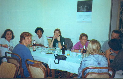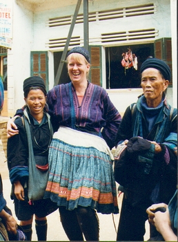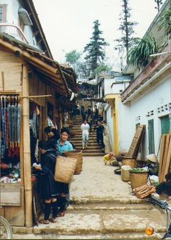 Oct.24 We are so awful optimistic - Perry - David - Heather - Annemette & I ! So we walked out into the rain to see the total sun-eclipse - BUT we couldn't even find the sun. The clouds hang thick & gray way below the mountaintops! So we walked back to the restaurant & had some hot lemon juice instead! Heather had decided to stay an extra day - but Johnny & David left for Hanoi. Ruth was going to China - we waved goodbye to them all & walked "home" to take a nap. Later this little very reduced gang of "BESTFRIENDS" went out to dinner. The "best friend-thing" is also one of Heathers - she kept saying :"my best friend in China or my best friend in California etc…." & someone said to her "You can't have all these BEST FRIENDS " Ohhh yes, she said , You are all my best friends too - (& that's how it ended after all these years (9 now in 2004!)) we are all still in touch & each others best friends - some of us had met later & we email across borders & oceans) Oct 25. & 26. Annemette - Perry - Heather & I took a long walk down the Lao Cai road just to check it out. We were going to leave Perry behind for an extra day - while we were going to Hanoi. Today it was sunshine - off course! & our walk was really lovely a nice way to say goodbye to Sapa in. We said goodbye to Orchid guesthouse & its lovely owners & entered the bus. In Lao Cai we went noodle soup hunting before buying the train ticket - that was sooo stupid - because they only had hard seats left when we came back & it was a night train. Didn't sleep a lot on the way back & was really stiff & sleepy when we walked back to QUEENS in Hanoi. Met David on the way - he showed us his hotel (Annemette & I started to laugh it was the same hotel we stayed on the first night we spend in Hanoi in 1993.) We got a 3 bed room & moved in. Told David & Fiona (another Aussie) to meet us at Queens at 6:30pm , then we had a shower & walked out to buy train tickets - Heather went to the Ho Chi Minh museum. Later we met her in the street & we all bought CD's (copies) 2 $ a piece! We met up with all the best friends (minus Perry) but met Johnny's best friend Lisa from Bermuda went out to eat & drinking another goodbye beer or two or…………. |